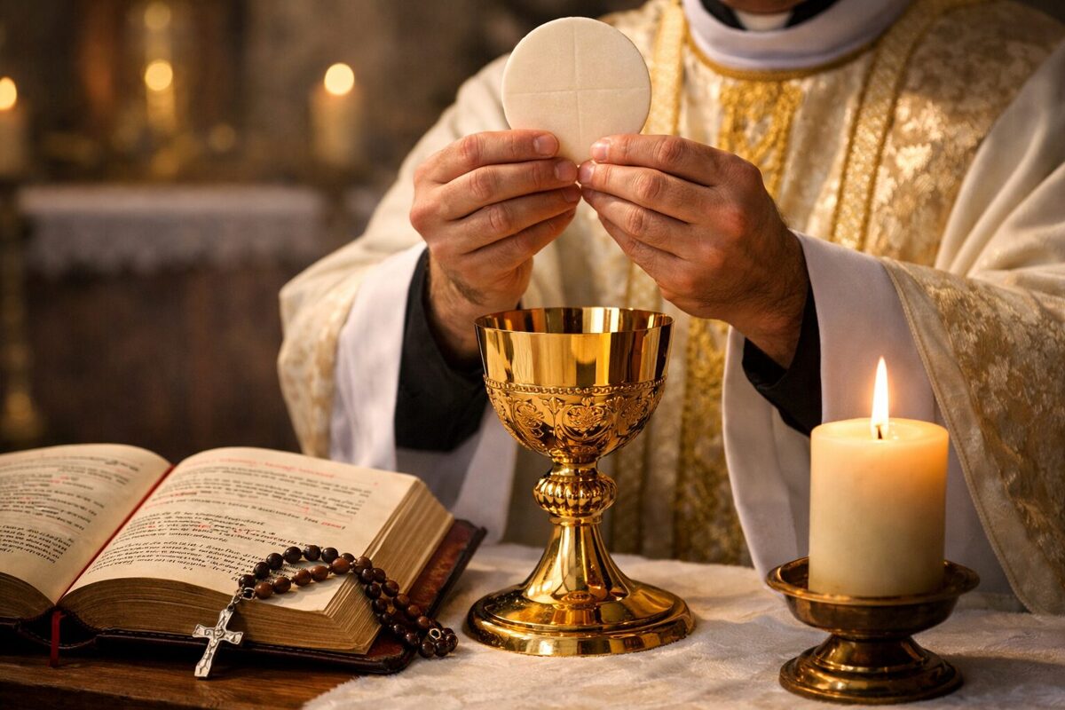 Prorok Malachiáš predpovedal prechod od starého obetného systému k novej forme obety: „Nemám vo vás záľubu… Lebo od východu slnka až po jeho západ je veľké moje meno medzi národmi…“ (Malachiáš 1:10-11). Katolícka tradícia toto chápe ako predobraz Eucharistie. Apoštol Pavol však používa iný jazyk: povzbudzuje veriacich, aby „dali svoje telá v živú, svätú a Bohu milú obetu“ (Rimanom 12:1). Eucharistia sa podľa katolíckeho učenia môže podávať len v zasvätených a požehnaných kostoloch, no Pavlovo poukazovanie na „živú obeť“ naznačuje širší, duchovný zmysel obety dostupnej veriacim všade.